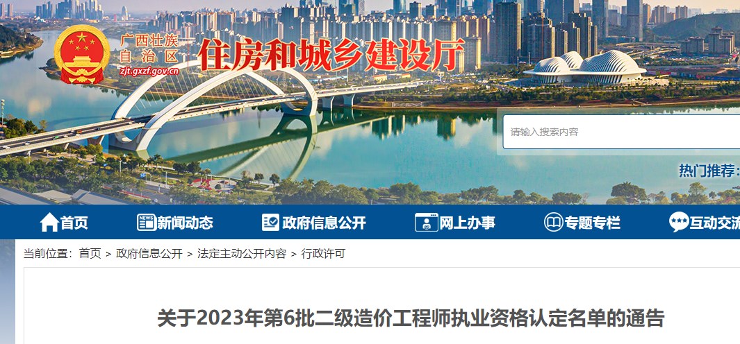 廣西住建廳關(guān)于第6批二級(jí)造價(jià)工程師執(zhí)業(yè)資格認(rèn)定名單的通告
