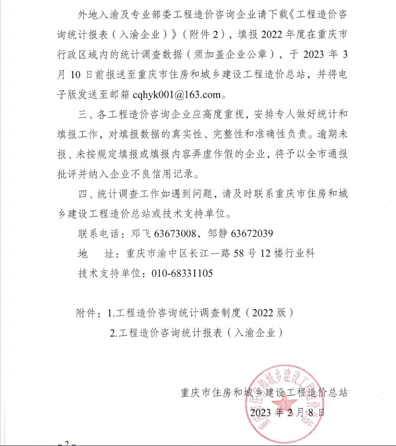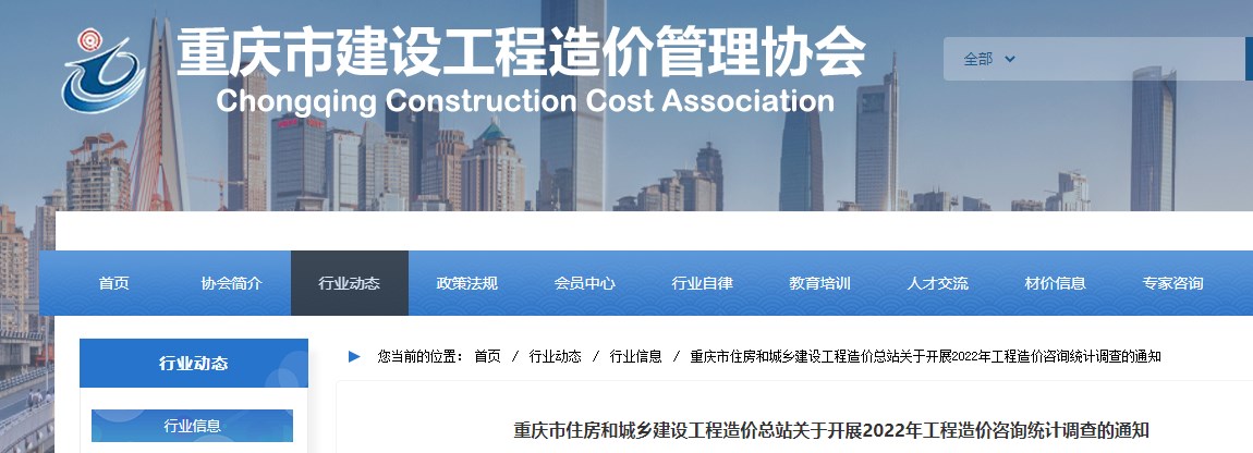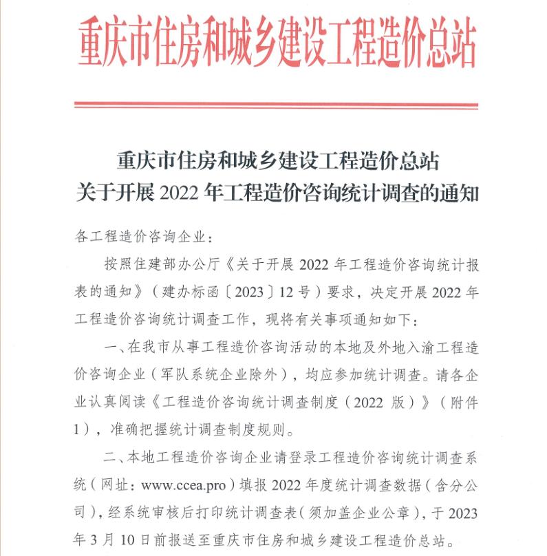 重慶市關(guān)于開展2022年工程造價咨詢統(tǒng)計調(diào)查的通知