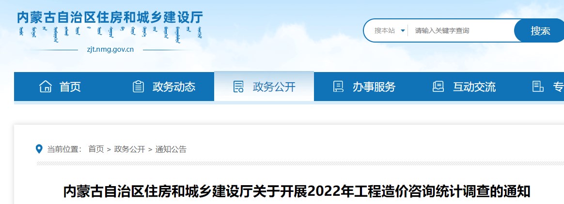 內(nèi)蒙古住建廳關(guān)于開展2022年工程造價(jià)咨詢統(tǒng)計(jì)調(diào)查的通知