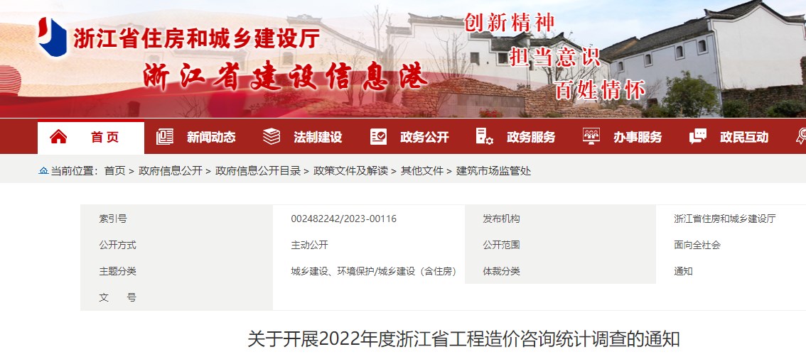 浙江省關(guān)于開展2022年度工程造價(jià)咨詢統(tǒng)計(jì)調(diào)查的通知