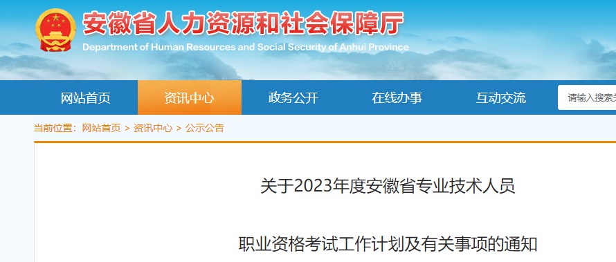 根據(jù)《人力資源社會保障部辦公廳關于2023年度專業(yè)技術人員職業(yè)資格考試工作計劃及有關事項的通知》(人社廳發(fā)〔2023〕3號)要求,結合我省實際,經(jīng)研究,現(xiàn)就2023年度安徽省專業(yè)技術人員職業(yè)資格考試工作計劃及有關事項通知如下: