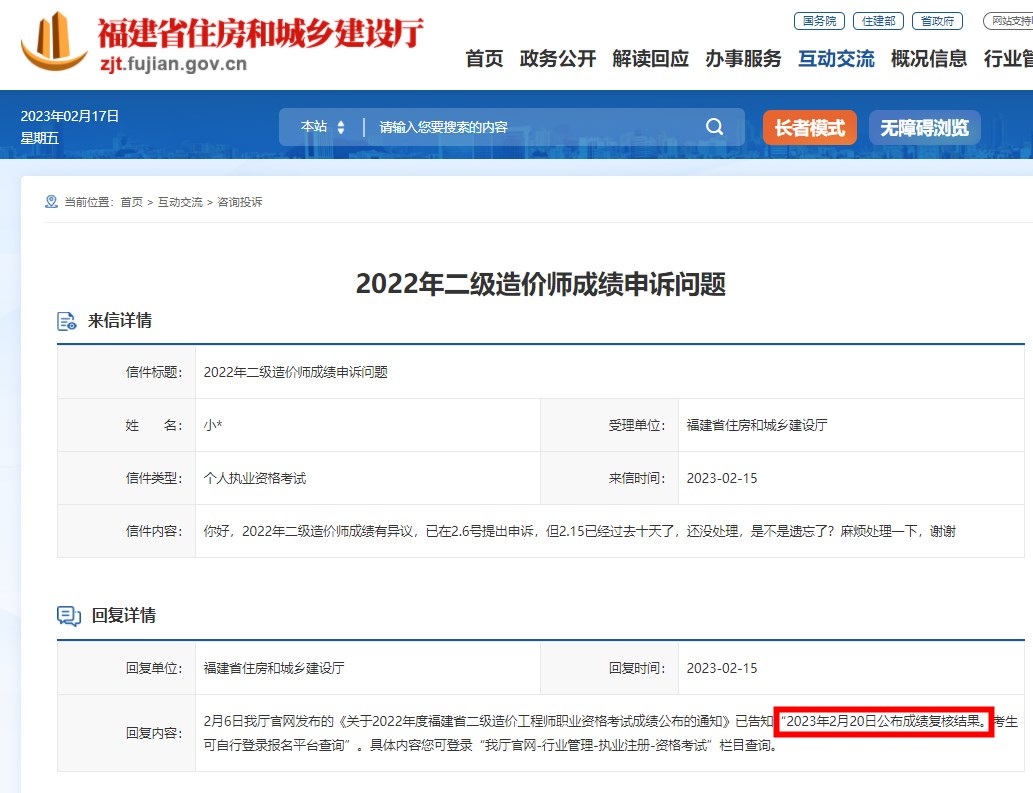 福建省成績公布也有一段時(shí)間了,有同學(xué)可能對成績有異議,提了申訴后還沒有消息。近日,有考生就成績復(fù)核的問題向福建省住建廳提問,獲得了如下回復(fù)。