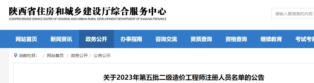 陜西省關于2023年第五批二級造價師注冊人員名單的公告
