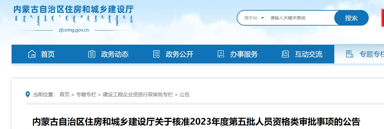 內(nèi)蒙古關(guān)于核準(zhǔn)2023年第五批二級(jí)造價(jià)師資格審批事項(xiàng)的公告