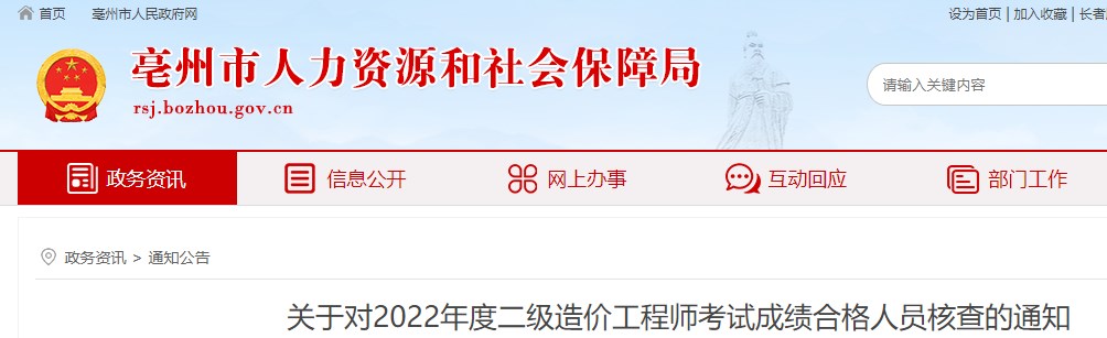 安徽亳州關(guān)于對(duì)2022年度二級(jí)造價(jià)師考試成績(jī)合格人員核查的通知