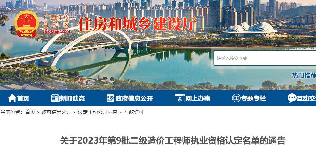 廣西省2023年第9批二級(jí)造價(jià)師執(zhí)業(yè)資格認(rèn)定名單的通告