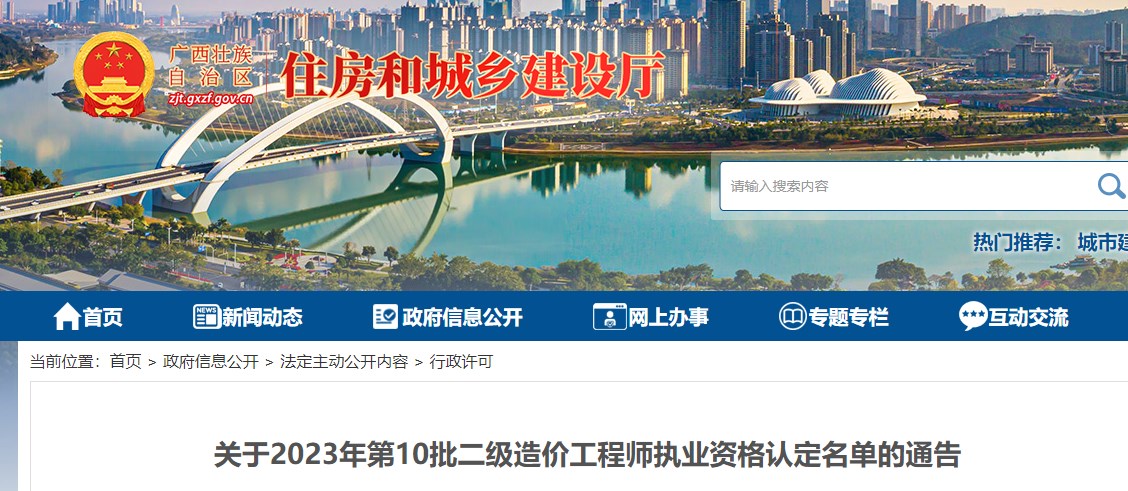 廣西關(guān)于2023年第10批二級造價師執(zhí)業(yè)資格認(rèn)定名單的通告