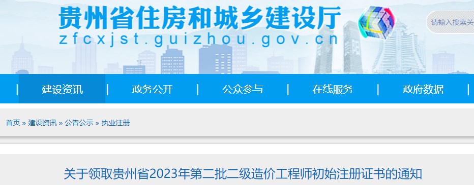 貴州省關(guān)于領(lǐng)取2023年第二批二級(jí)造價(jià)工程師初始注冊(cè)證書的通知