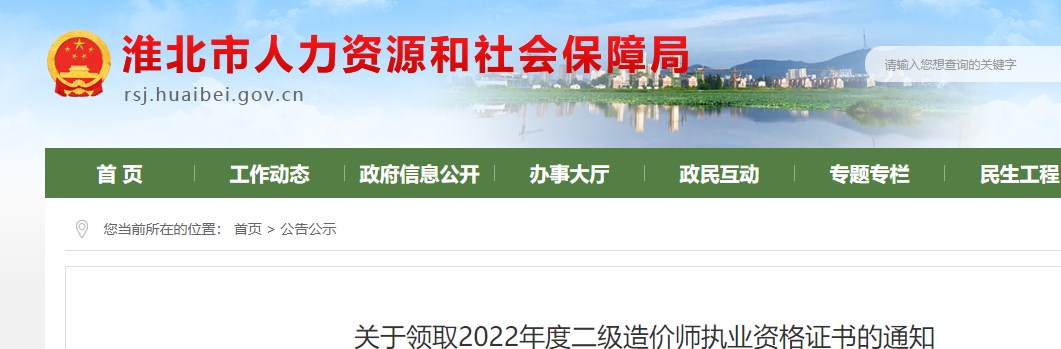 安徽淮北關(guān)于領(lǐng)取2022年度二級造價師執(zhí)業(yè)資格證書的通知