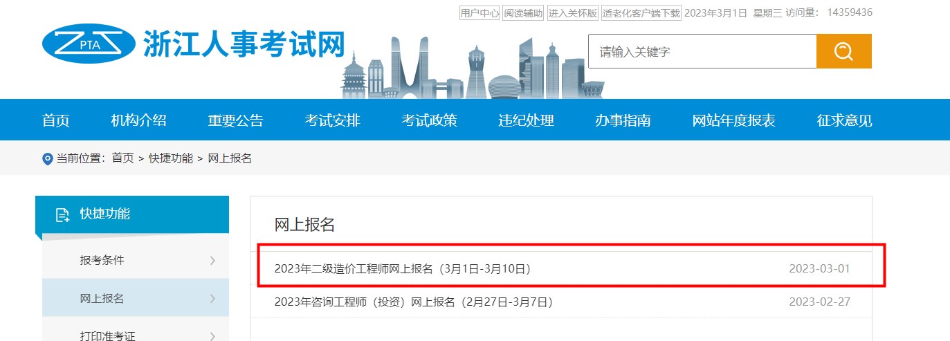 報(bào)名入口:浙江人事考試網(wǎng)( )-網(wǎng)上報(bào)名-二級(jí)造價(jià)師考試報(bào)名入口