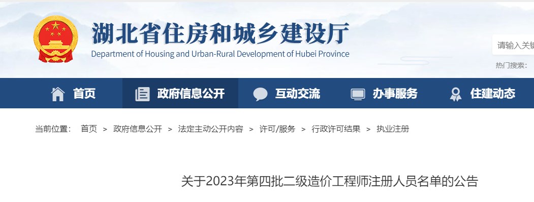 湖北省關(guān)于2022年第四批二級造價師注冊人員名單的公告