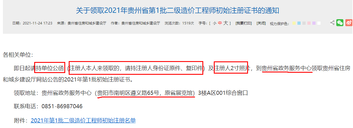 即日起請持單位公函(注冊人本人來領取的,請持注冊人身份證原件、復印件)及注冊人2寸照片,到貴州省政務服務中心領取貴州省住房和城鄉(xiāng)建設廳網(wǎng)站公告的2021年第1批初始注冊證書。
