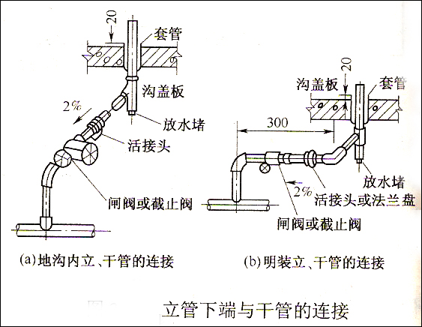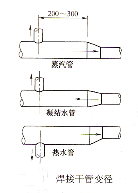 干管變徑時,采用偏心變徑管。立管位置距變徑處200~300mm。