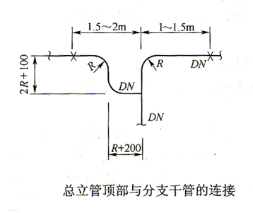 立管與干管之間的連接,應(yīng)采用2個或3個彎頭連接。