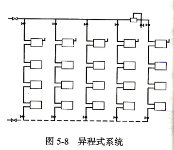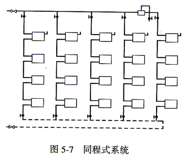 熱水在環(huán)路所走的路程大致相等的系統(tǒng)為同程式系統(tǒng),否則為異程式系統(tǒng)。