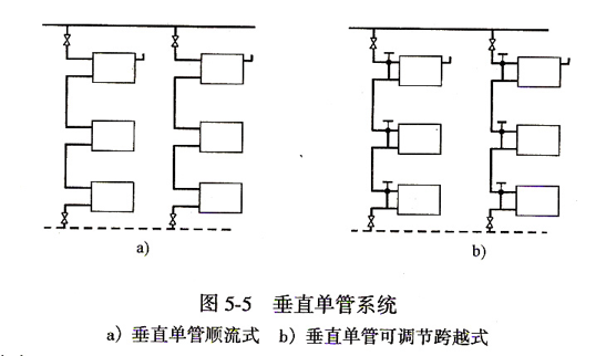 分為垂直單管順流式和垂直單管跨越式兩種。如圖: