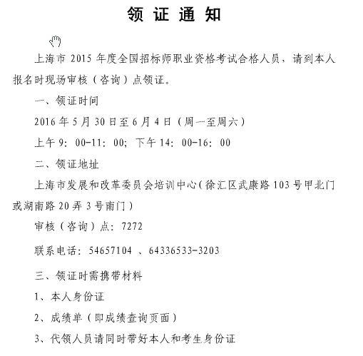 摘要:上海地區(qū)2015年招標(biāo)師合格證已經(jīng)可以領(lǐng)取,領(lǐng)取時(shí)間:5月30日-6月4日,領(lǐng)取地點(diǎn):報(bào)名時(shí)現(xiàn)場(chǎng)審核點(diǎn)。