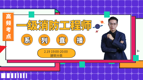 2020年一級(jí)消防工程師高頻考點(diǎn)系列免費(fèi)直播課,暫定有3期,2月12日開始每周三晚上19點(diǎn),由靳嘯天老師為大家主講,全面深入剖析知識(shí)點(diǎn),夯實(shí)基礎(chǔ),每天1小時(shí),消防備考不再難。