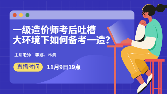 2020年一級(jí)造價(jià)師考試已經(jīng)結(jié)束,2021年一級(jí)造價(jià)師考試備考可以開始了!在這個(gè)時(shí)候大家就需要一級(jí)造價(jià)師考后吐槽,另2021年大環(huán)境下如何備考一造?11月9日晚19:00,建設(shè)工程教育網(wǎng)李娜老師和林澍老師在直播間等你,與你們不見不散!掃描下方二維碼加入一造備考群,開啟2021年的備考之旅吧!