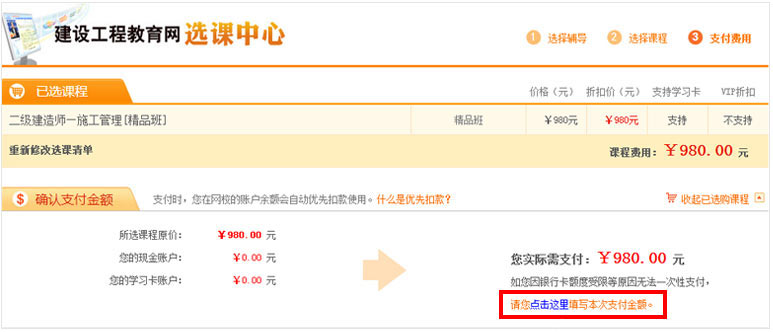 在支付費用頁,點擊下圖紅框所示位置,填寫補差價的金額及支付原因。其中,支付原因請寫明:班次升級。