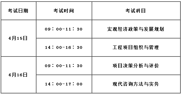 2017年度咨詢工程師(投資)職業(yè)資格考試時(shí)間及科目具體安排如下:
