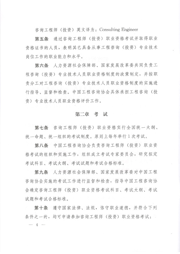 中國(guó)工程咨詢協(xié)會(huì)公布咨詢工程師(投資)職業(yè)資格考試實(shí)施辦法通知: