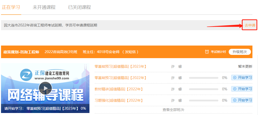 3.延期說明:目前延期后,僅延長課程學習期;如本年度進行補考,則學員課程將在正??己箨P(guān)課;如本年度考試確定不舉行,則將針對此部分學員進行換課處理,換至2023年對應(yīng)班型。