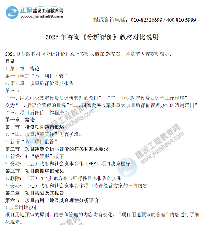 - · 2025年咨詢工程師《分析評(píng)價(jià)》教材總體變動(dòng)約5%左右