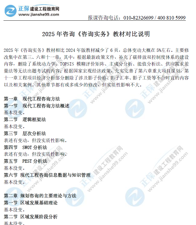 - · 2025年咨詢工程師《咨詢實(shí)務(wù)》教材變動(dòng)約5%左右