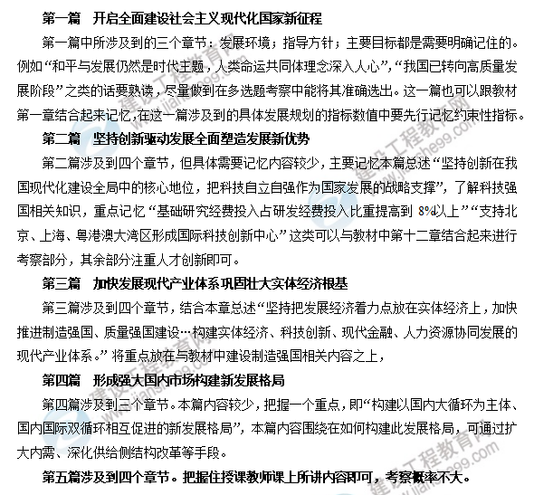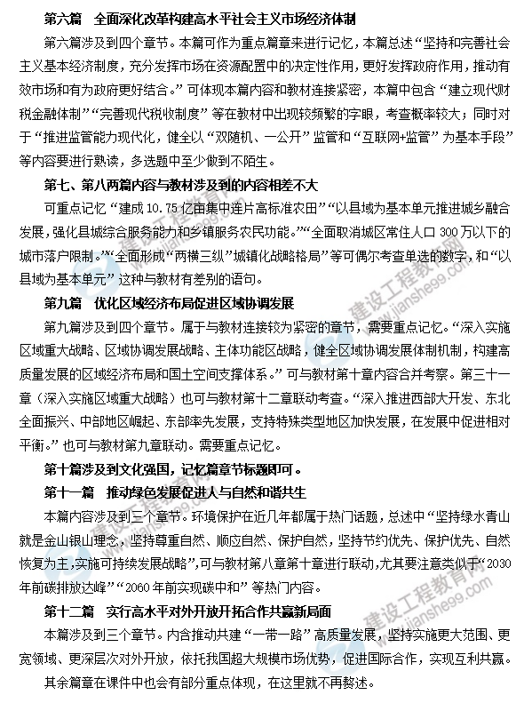 自第十二篇(實行高水平對外開放 開拓合作共贏新局面)之后,即自涉及開放的篇章之后,對咨詢工程師就不涉及到特別重點的部分了,這與十三五和十二五規(guī)劃一脈相承,開放的篇章前涉及到經(jīng)濟領域、環(huán)境領域等在咨詢工程師平時工作涉及到的方面。開放的篇章之后跟咨詢工程師的聯(lián)系就大大減少,因此在學習十四五規(guī)劃中,在沒有時間的情況下著重看前十二篇。