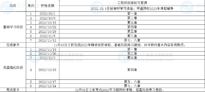 1、整體進(jìn)度說明:本計(jì)劃表從2022年10月1日開始執(zhí)行,計(jì)劃于2022年12月31日結(jié)束,共計(jì)13周;其中:基礎(chǔ)學(xué)習(xí)階段安排7周,鞏固強(qiáng)化階段安排6周。學(xué)員可根據(jù)本表的提示,結(jié)合自己的工作,學(xué)習(xí)情況進(jìn)行細(xì)化,并按網(wǎng)校要求完成聽課、做題的學(xué)習(xí)任務(wù),基本可滿足考試需要。