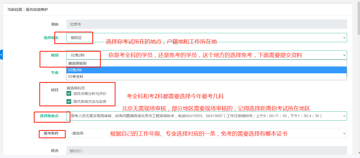 第四步:這部分是填寫的重點,核查必查的地方;地市選擇你考試所在的地點,戶籍地或者工作所在地,簡言之考哪選哪;級別就是考全科或者免2科;下面都是根據(jù)實際情況進行核查,核查點是有現(xiàn)場核查的需要選擇;