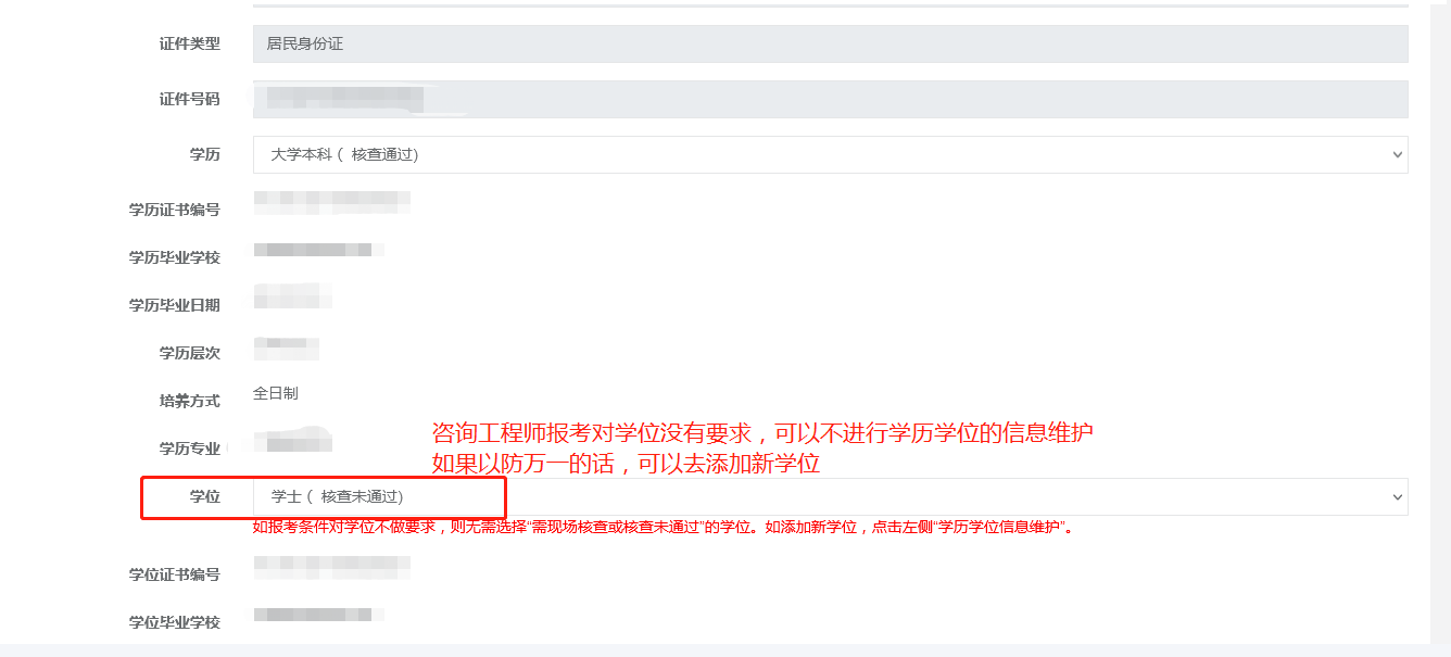 第五步:這部分信息系統(tǒng)自動識別,但需要注意學(xué)位部分的選擇;