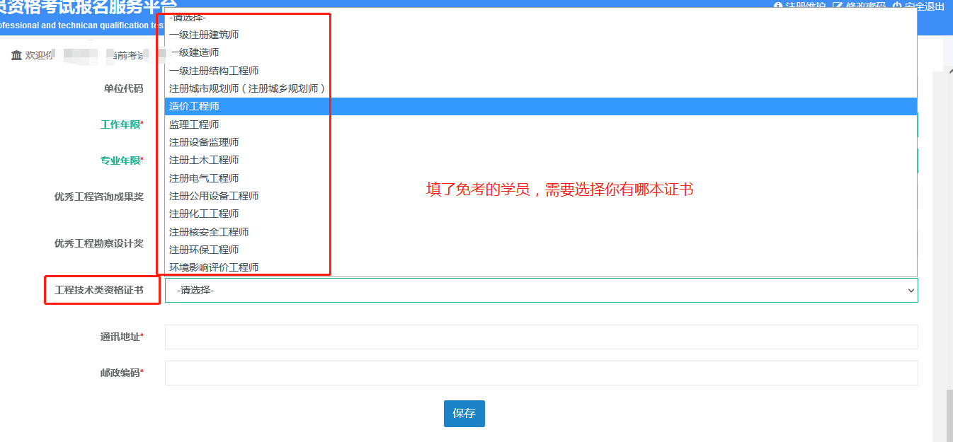第七步:免考學(xué)員需要選擇自己目前已有的證書;虛假填寫自動核查,報名失??;