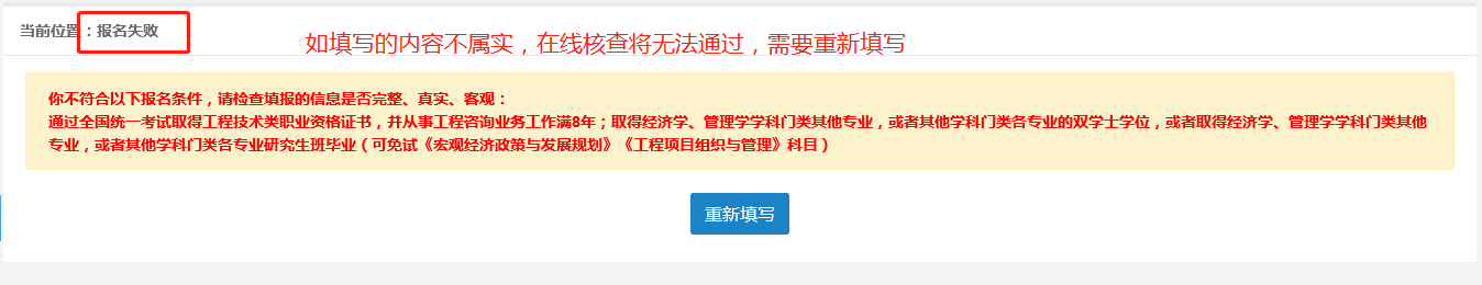 第九步:直接在線核查報名信息是否符合條件,如不符合,則需要重新填寫;