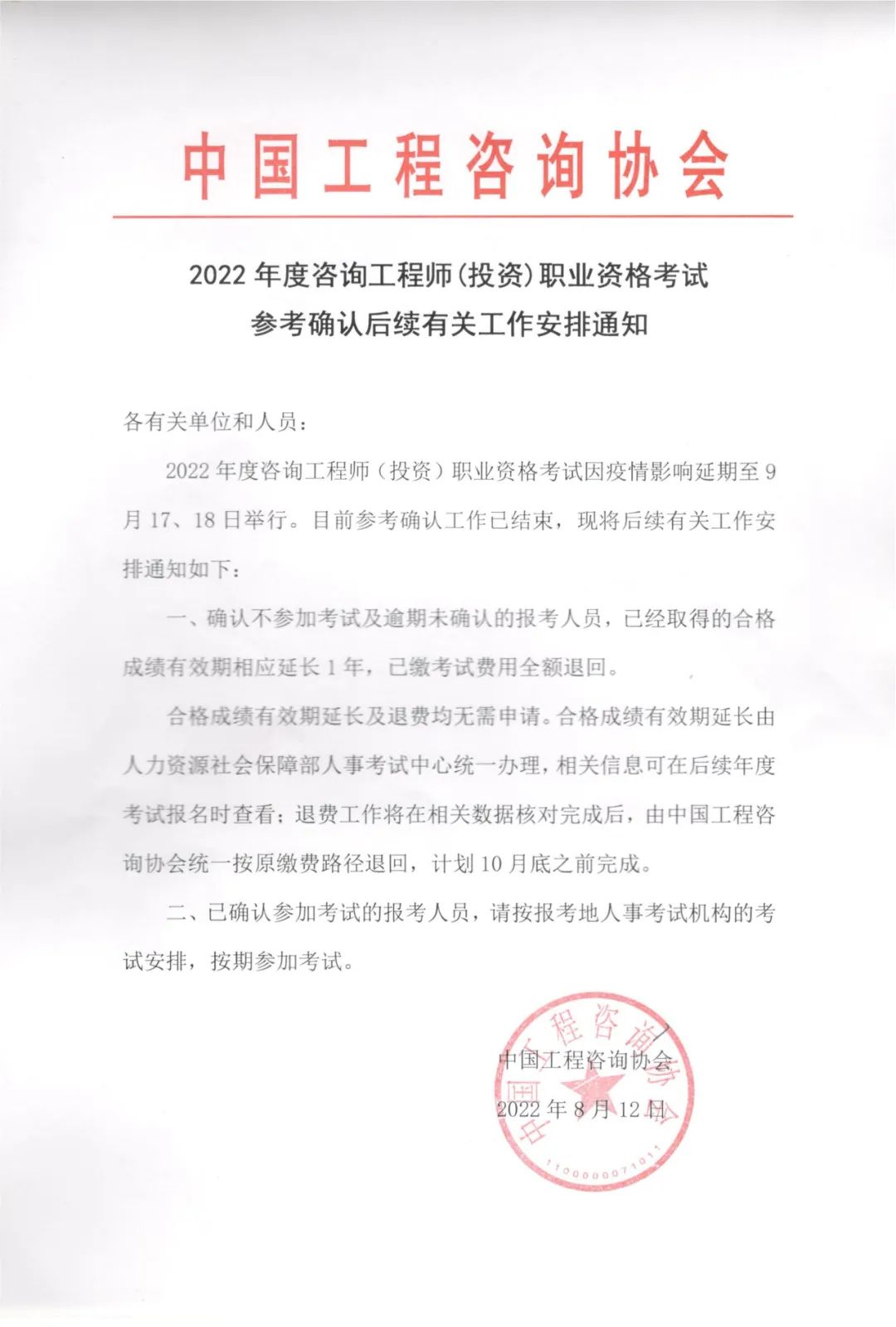 2022年度咨詢工程師(投資)職業(yè)資格考試參考確認(rèn)后續(xù)有關(guān)工作安排通知
