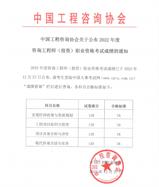 中國工程咨詢協(xié)會:2022年咨詢工程師考試成績合格標準已經(jīng)公布