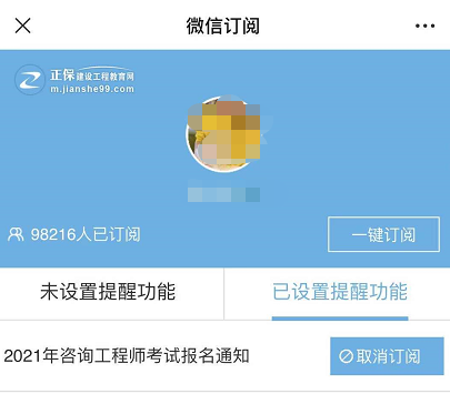 微信訂閱2021年咨詢工程師考試報(bào)名提醒 及時(shí)獲取報(bào)考信息!