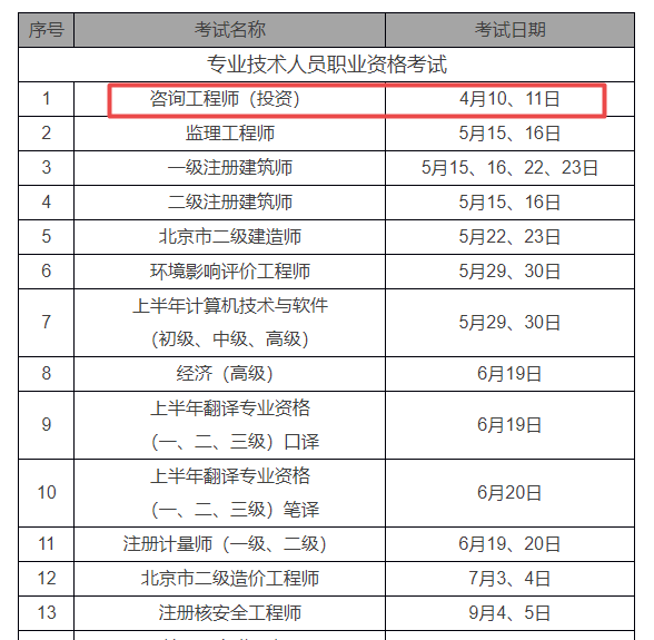 北京2021年咨詢工程師恢復(fù)考試 時間為4月10、11日