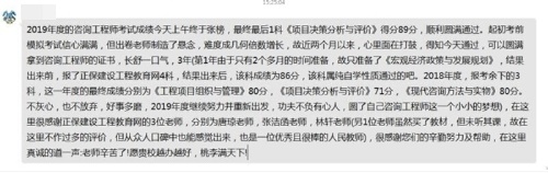 2019年度的咨詢工程師考試成績(jī)今天上午終于張榜,最終最后1科《項(xiàng)目決策分析與評(píng)價(jià)》得分89分,順利圓滿通過(guò)。起初考前模擬考試信心滿滿,但出卷老師制造了懸念,難度成幾何倍數(shù)增長(zhǎng),故近兩個(gè)月以來(lái),心里面在打鼓,得知今天通過(guò),可以圓滿拿到咨詢工程師的證書,長(zhǎng)舒一口氣,3年(第1年由于只有2個(gè)多月的時(shí)間準(zhǔn)備,故只準(zhǔn)備了《宏觀經(jīng)濟(jì)政策與發(fā)展規(guī)劃》,結(jié)果出來(lái)前,報(bào)了正保建設(shè)工程教育網(wǎng)4科,結(jié)果出來(lái)后,該科成績(jī)?yōu)?6分,該科屬純自學(xué)性質(zhì)通過(guò)的吧。2018年度,報(bào)考余下的3科,這一年度的最終成績(jī)分別為《工程項(xiàng)目組織與管理》80分,《項(xiàng)目決策分析與評(píng)價(jià)》71分,《現(xiàn)代咨詢方法與實(shí)物》80分。不灰心,也不放棄,好事多磨,2019年度繼續(xù)努力并重新出發(fā),功夫不負(fù)有心人,圓了自己咨詢工程師這一個(gè)小小的夢(mèng)想),在這里很感謝正保建設(shè)工程教育網(wǎng)的3位老師,分別為唐瓊老師,張潔函老師,林軒老師(另1位老師雖然買了教材,但未聽(tīng)其課,故在這里不作過(guò)多的評(píng)價(jià),但從眾人口碑中也能感覺(jué)出來(lái),也是一位優(yōu)秀且很棒的人民教師),很感謝您們的辛勤努力及幫助,在這里真誠(chéng)的道一聲:老師辛苦了!愿貴校越辦越好,桃李滿天下!