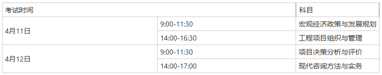 2026年度咨詢工程師(投資)職業(yè)資格考試時間安排