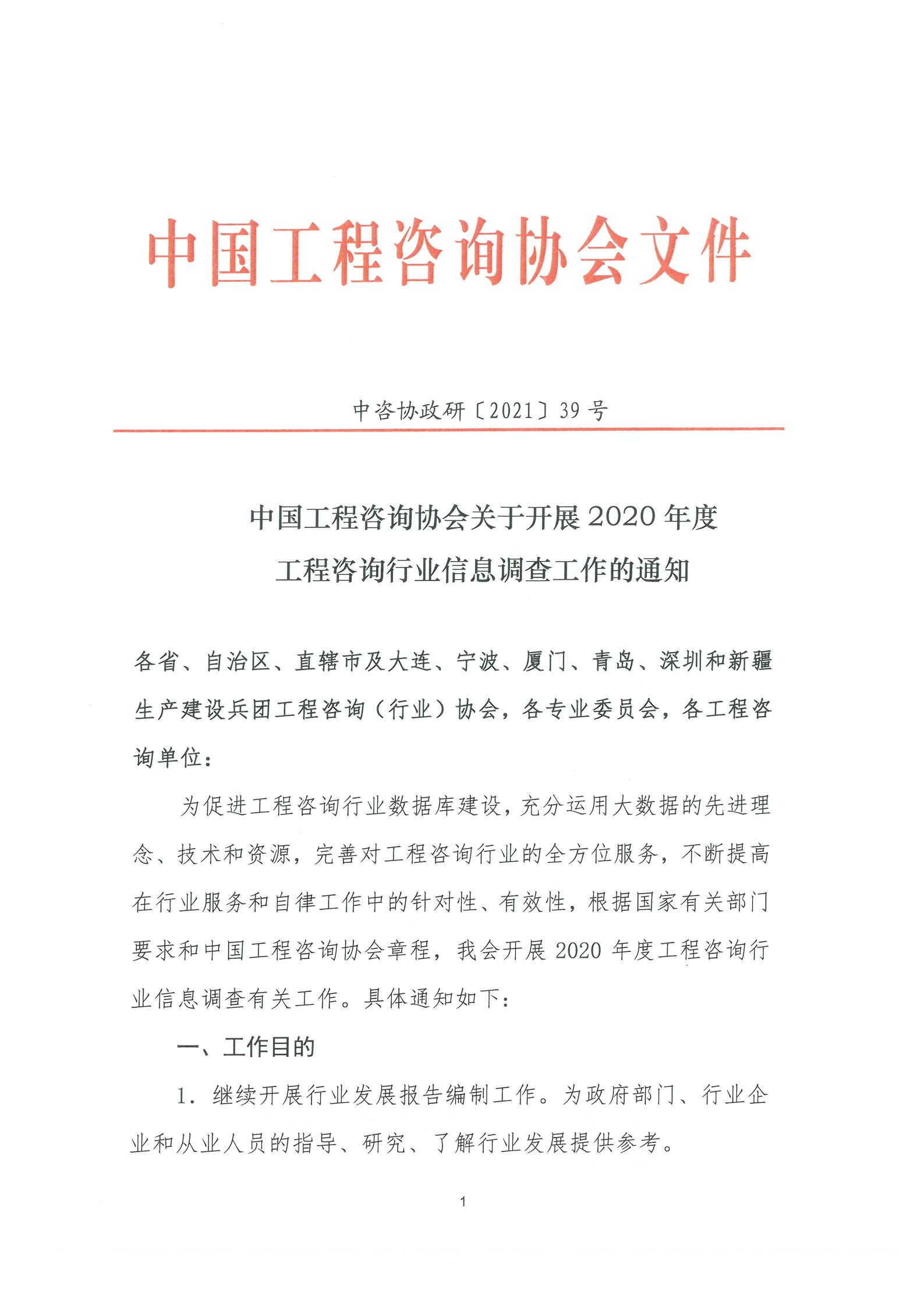 2020年度中國工程咨詢協(xié)會(huì)關(guān)于開展工程咨詢行業(yè)信息調(diào)查工作的通知