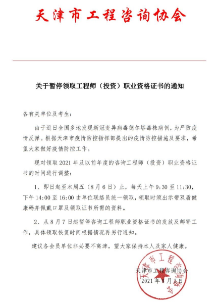天津市證書領取時間是2021年8月3日至8月6日(8月6日之后暫停領?。?/span>,具體查看: