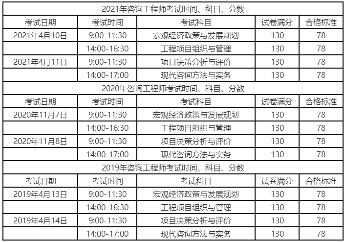 2022年咨詢工程師考試時(shí)間、科目、分?jǐn)?shù)可參考下列歷年考試的時(shí)間、科目、分?jǐn)?shù),從歷年考試時(shí)間可以看出,歷年咨詢考試時(shí)間均為4月第二周的周六和周日兩天,2020年受疫情影響考試時(shí)間推遲到11月,從歷年考試時(shí)間可以分析出2022年咨詢考試時(shí)間預(yù)計(jì)是2022年4月9日、10日。