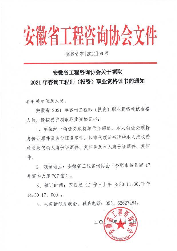 2021年安徽省咨詢工程師合格證書領(lǐng)取時(shí)間