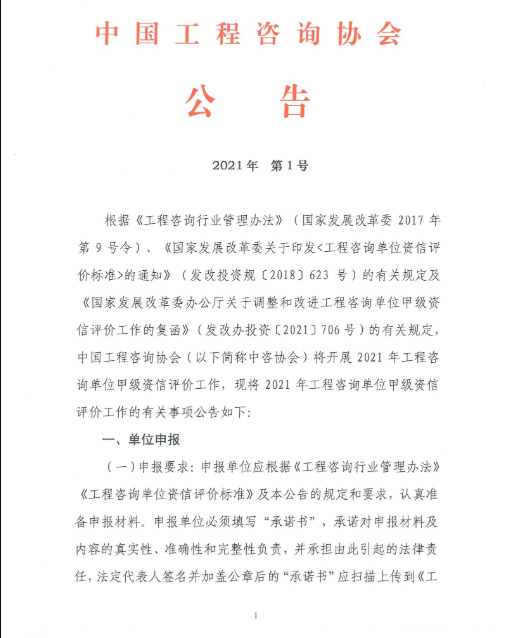 中國(guó)工程咨詢協(xié)會(huì)2021年第1號(hào)公告