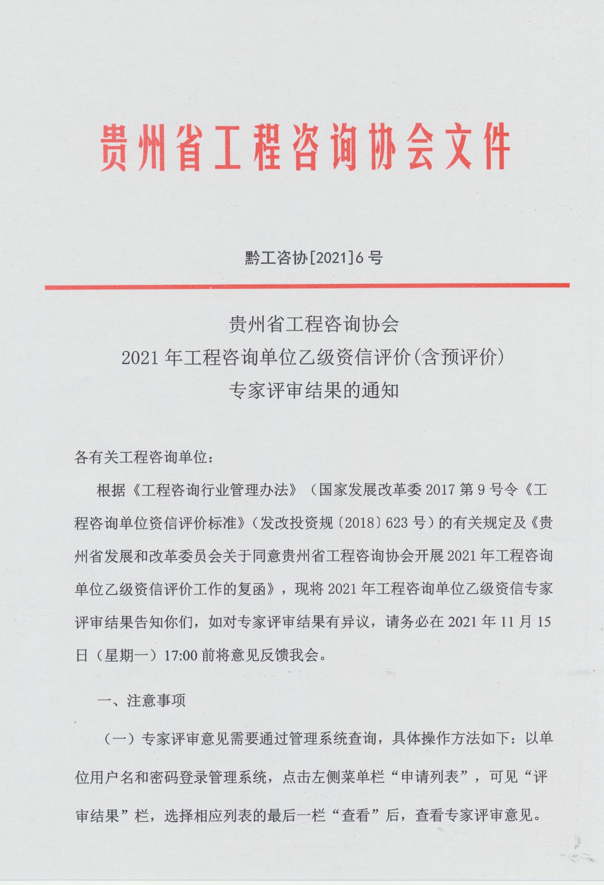 貴州2021年工程咨詢單位乙級(jí)資信評(píng)價(jià)(含預(yù)評(píng)價(jià))專家評(píng)審結(jié)果的通知