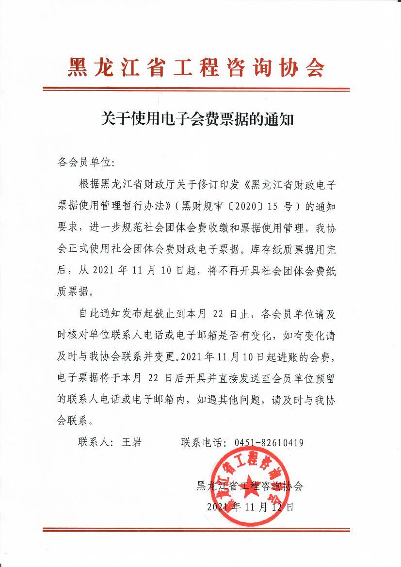 黑龍江咨詢工程協(xié)會(huì)關(guān)于使用電子會(huì)費(fèi)票據(jù)的通知