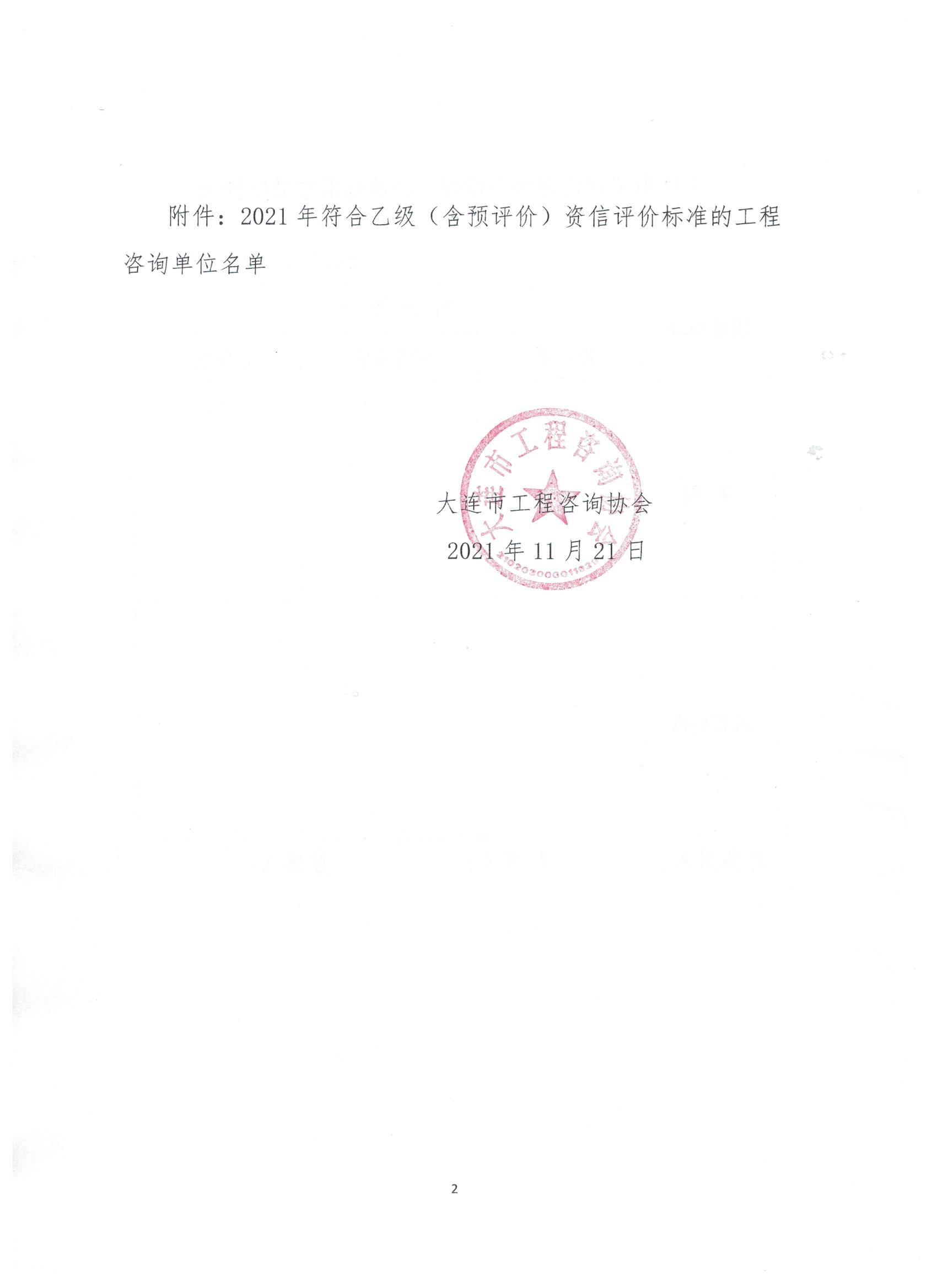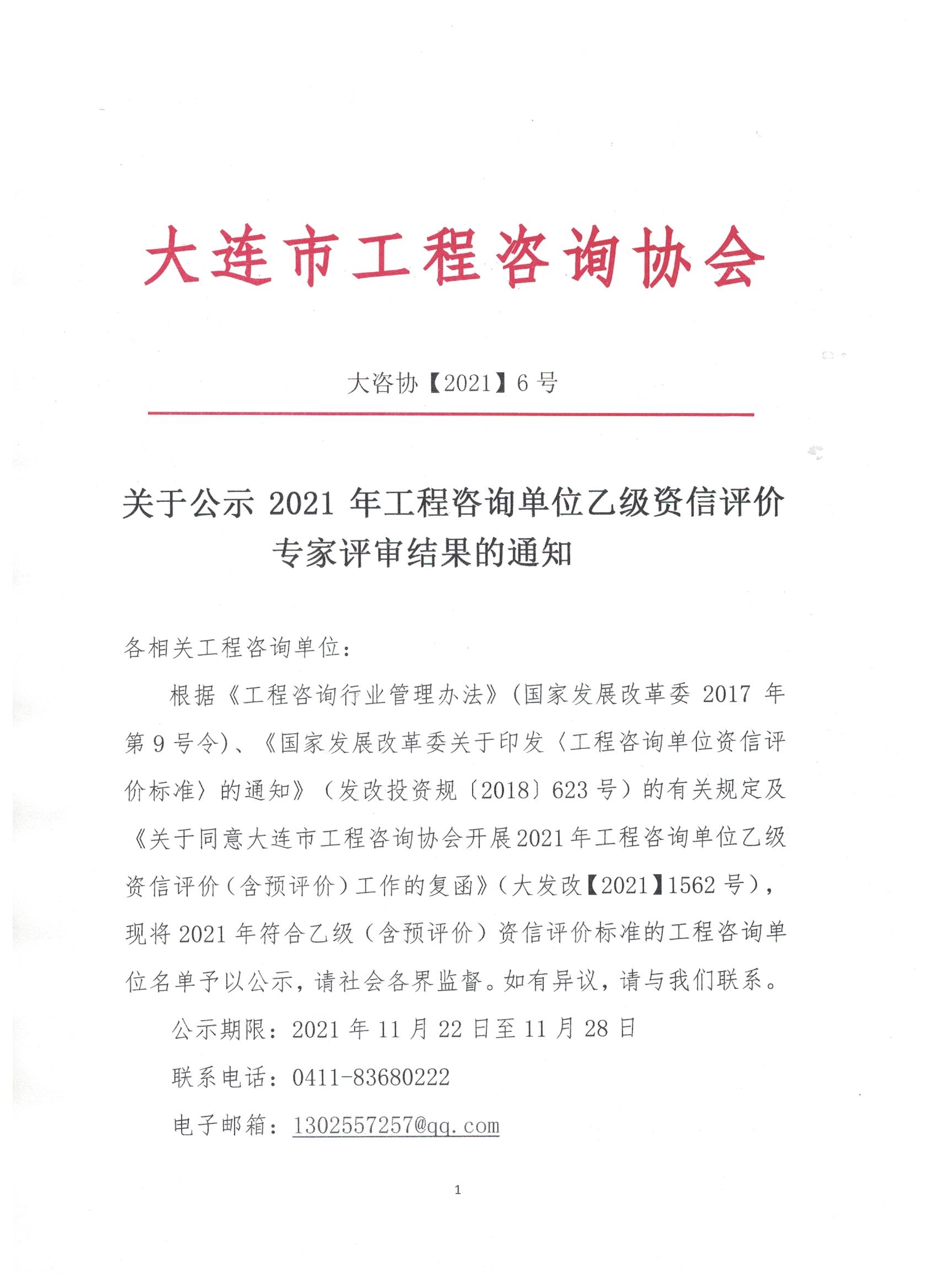 關于公示大連2021年工程咨詢單位乙級資信評價專家評審結(jié)果的通知