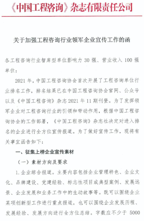 浙江工程咨詢協(xié)會關(guān)于加強工程咨詢行業(yè)領(lǐng)軍企業(yè)宣傳工作的函